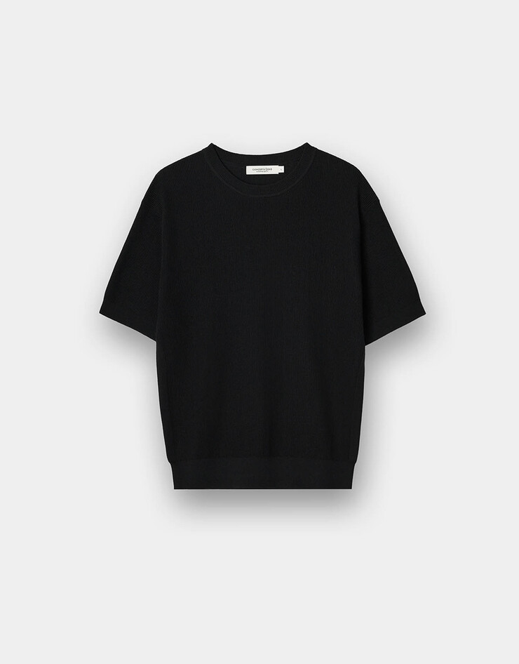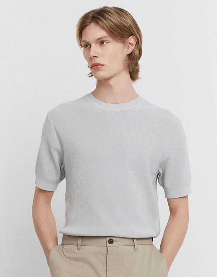 텍스처 반팔 크루넥 니트 스웨터