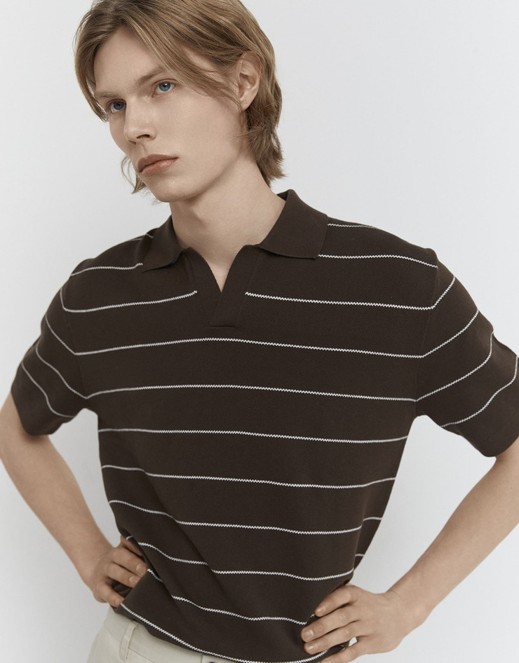 텍스처 반팔 폴로 니트 스웨터