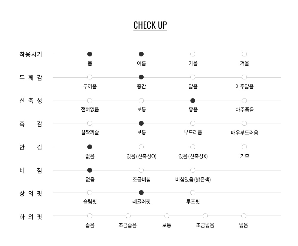 코튼, 폴리 혼방 원사를 사용했으며, 특수 조직 기법으로 짜여 시원하고 쾌적함을 느낄 수 있습니다.