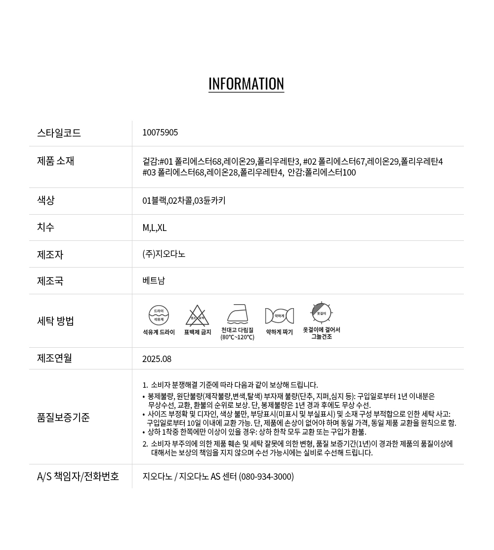 - 교환 진행시 배송비 5,000원 주문자 성함으로 입금 부탁드립니다(신한은행:267-05-028523 (주)지오다노)