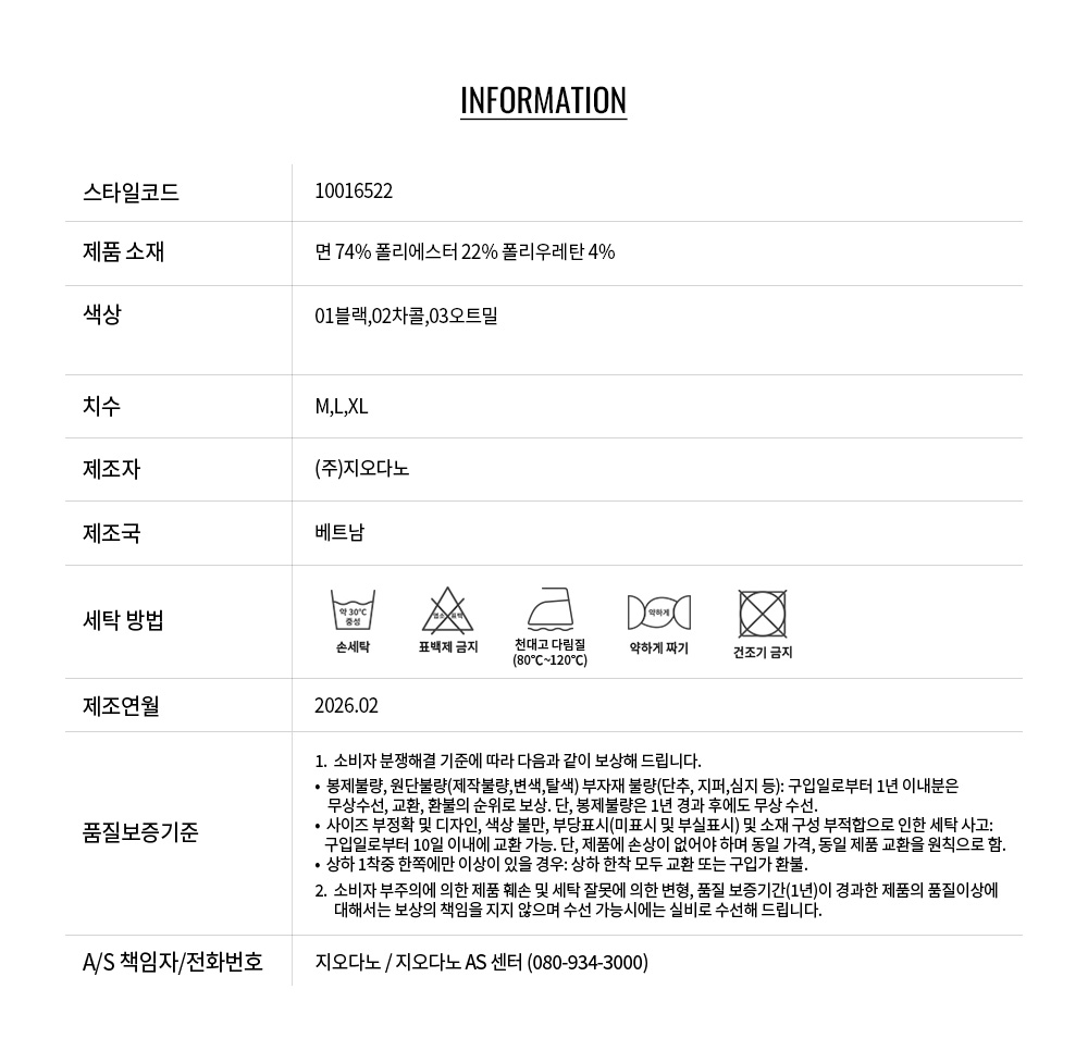 - 교환 진행시 배송비 5,000원 주문자 성함으로 입금 부탁드립니다(신한은행:267-05-028523 (주)지오다노)