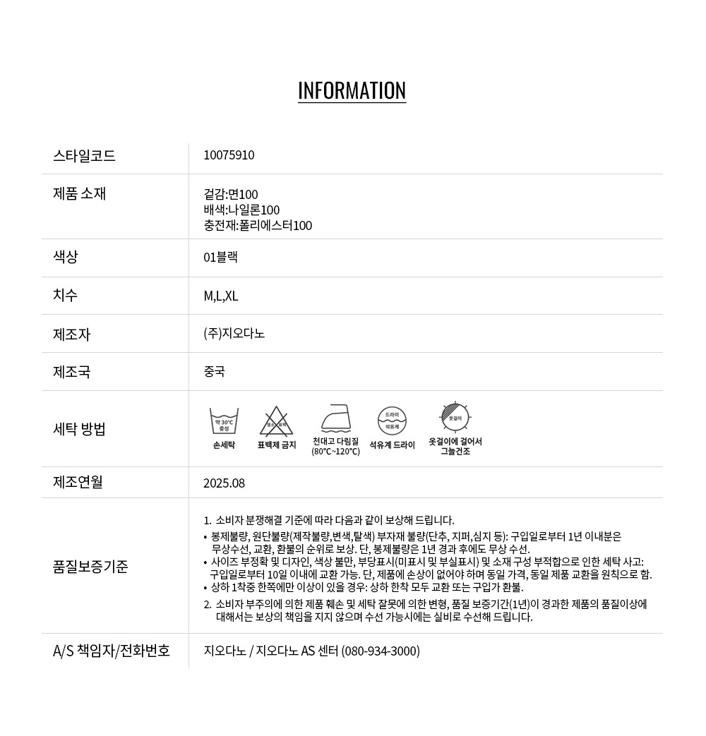 • 교환 진행시 배송비 5,000원 주문자 성함으로 입금 부탁드립니다(신한은행:267-05-028523 (주)지오다노)