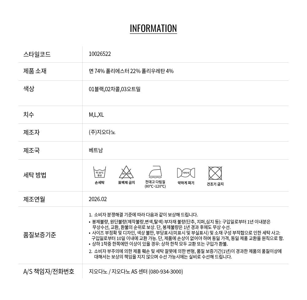 • 교환 진행시 배송비 5,000원 주문자 성함으로 입금 부탁드립니다(신한은행:267-05-028523 (주)지오다노)
