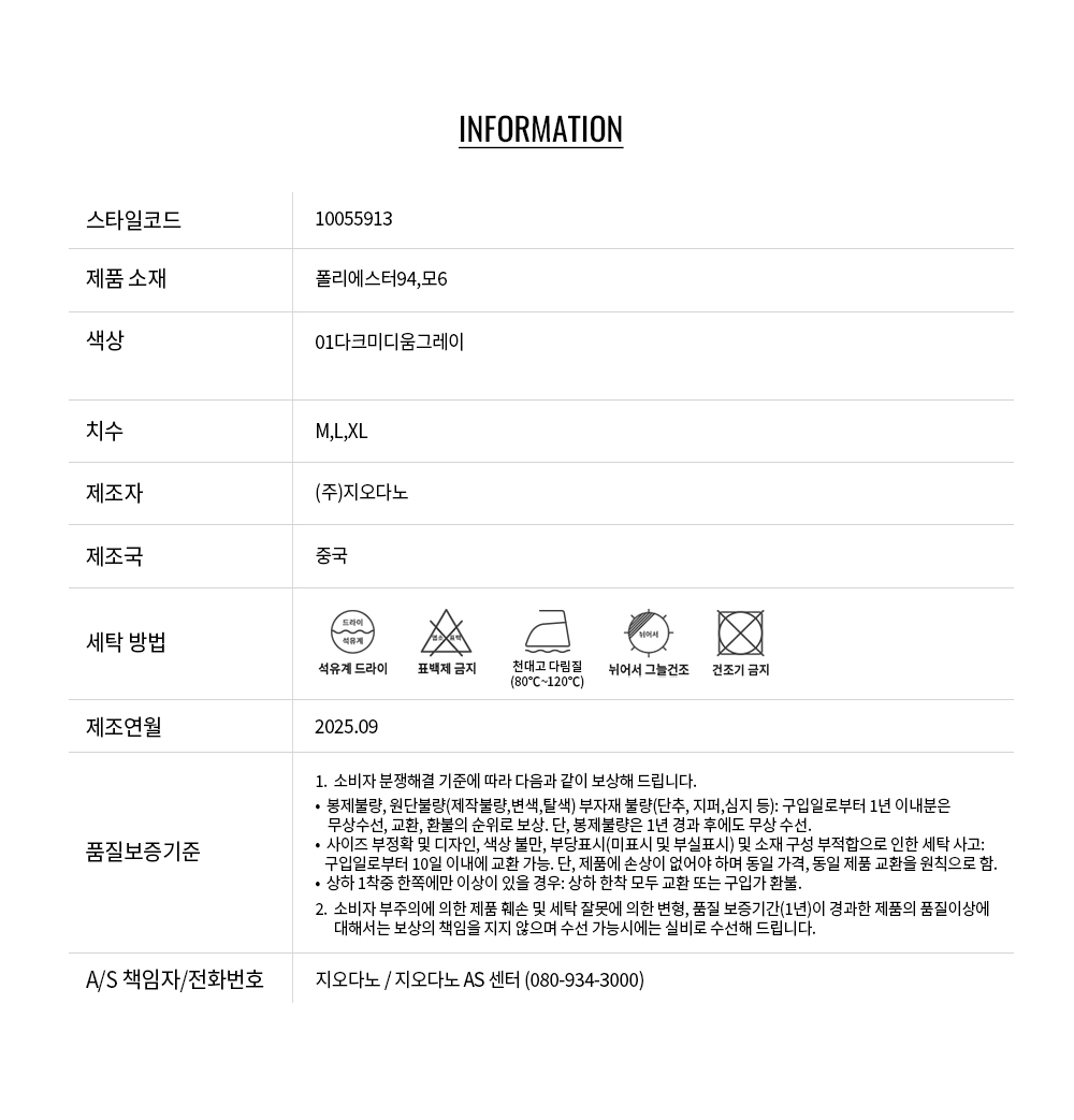 • 교환 진행시 배송비 5,000원 주문자 성함으로 입금 부탁드립니다(신한은행:267-05-028523 (주)지오다노)