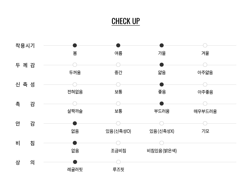 린넨, 폴리에스터, 코튼 혼방 원단으로 고급스러운 느낌, 손쉬운 주름 관리, 가볍고 편안한 착용감을 모두 제공합니다.
