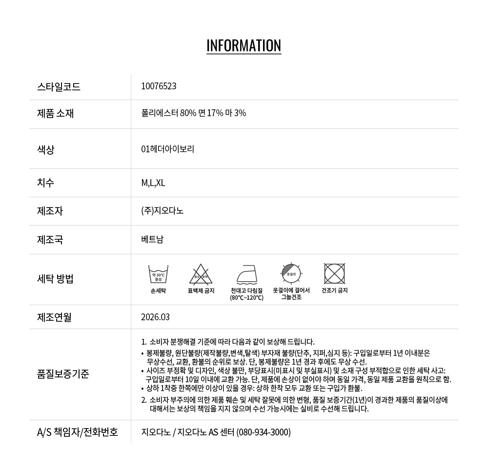 - 교환 진행시 배송비 5,000원 주문자 성함으로 입금 부탁드립니다(신한은행:267-05-028523 (주)지오다노)