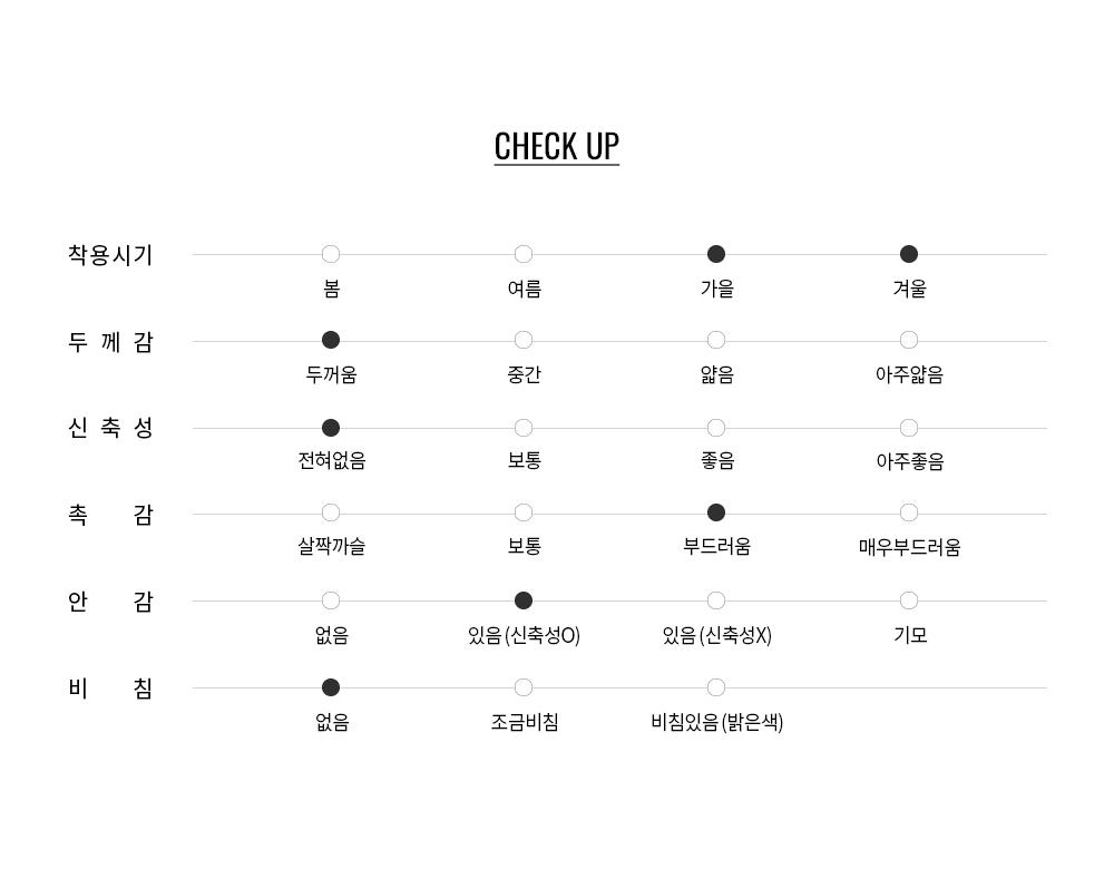캐시미어가 들어간 울 블렌드 소재를 사용하여 고급스러운 질감과 탄탄한 내구성을 겸비했습니다. 적당한 중량감 있는 원단은 보온성을 충분히 확보하면서도 자연스러운 실루엣을 유지해 간절기부터 초겨울까지 활용 가능합니다. 캐시미어 함유로 부드러운 터치감이 돋보이며, 울 특유의 따뜻한 감성과 고급스러운 표면감이 매력적으로 표현됩니다.