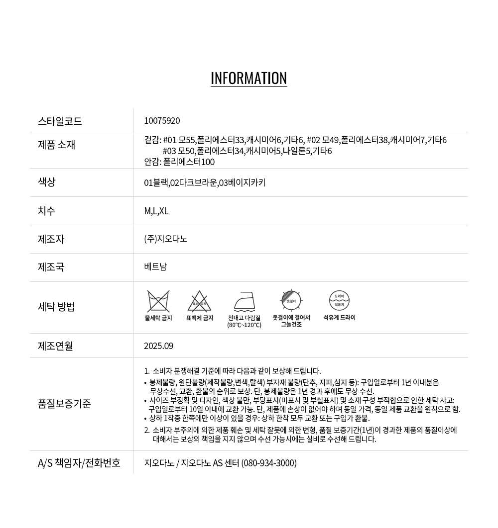 • 교환 진행시 배송비 5,000원 주문자 성함으로 입금 부탁드립니다(신한은행:267-05-028523 (주)지오다노)