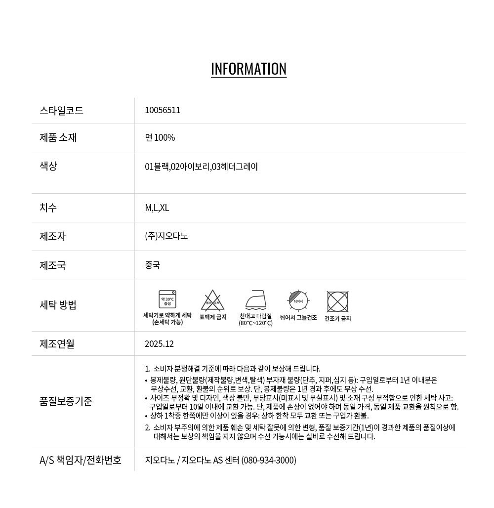• 교환 진행시 배송비 5,000원 주문자 성함으로 입금 부탁드립니다(신한은행:267-05-028523 (주)지오다노)