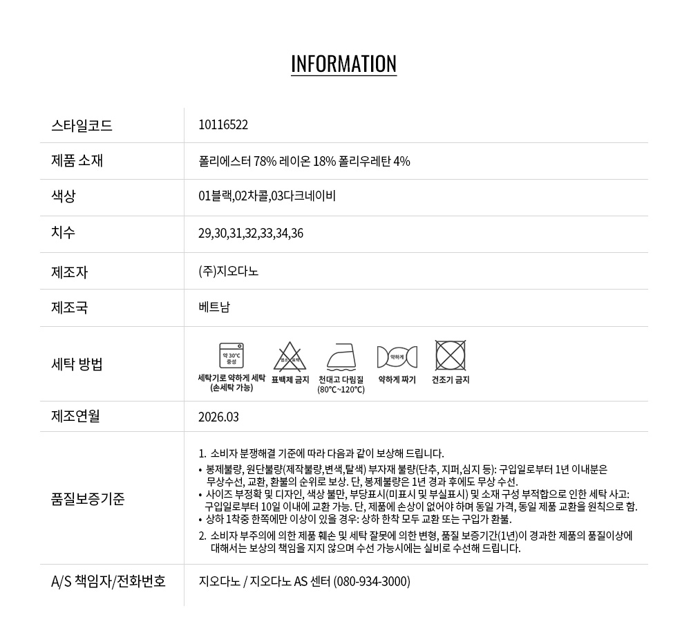 - 교환 진행시 배송비 5,000원 주문자 성함으로 입금 부탁드립니다(신한은행:267-05-028523 (주)지오다노)