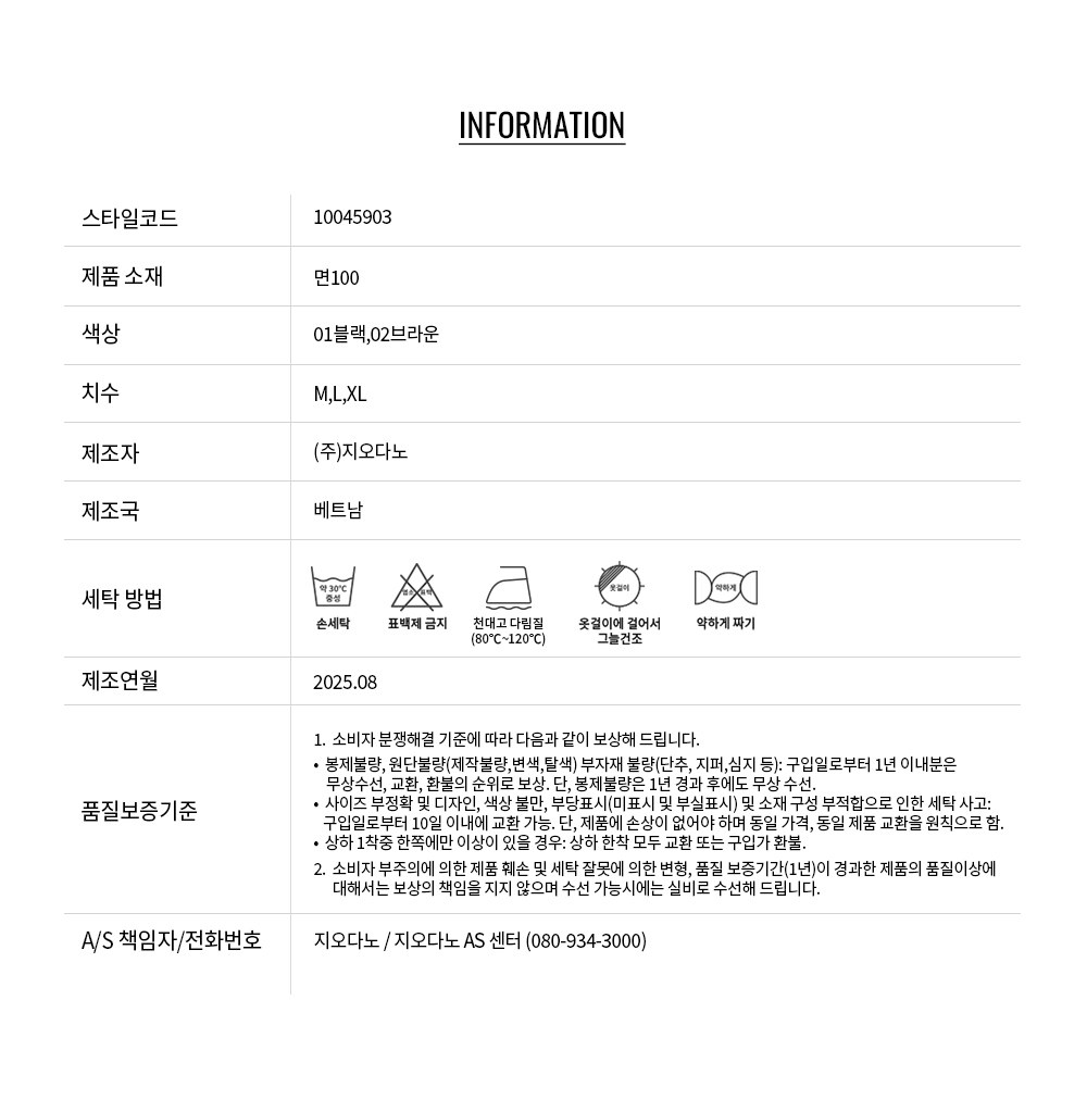 • 교환 진행시 배송비 5,000원 주문자 성함으로 입금 부탁드립니다(신한은행:267-05-028523 (주)지오다노)