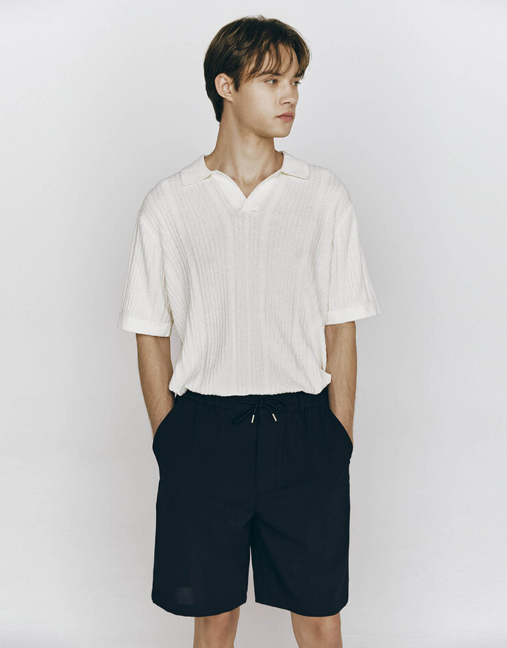 코튼 나일론 슬릿넥 반팔 니트 스웨터