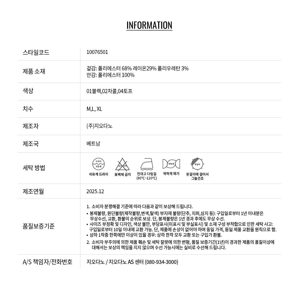 - 교환 진행시 배송비 5,000원 주문자 성함으로 입금 부탁드립니다(신한은행:267-05-028523 (주)지오다노)