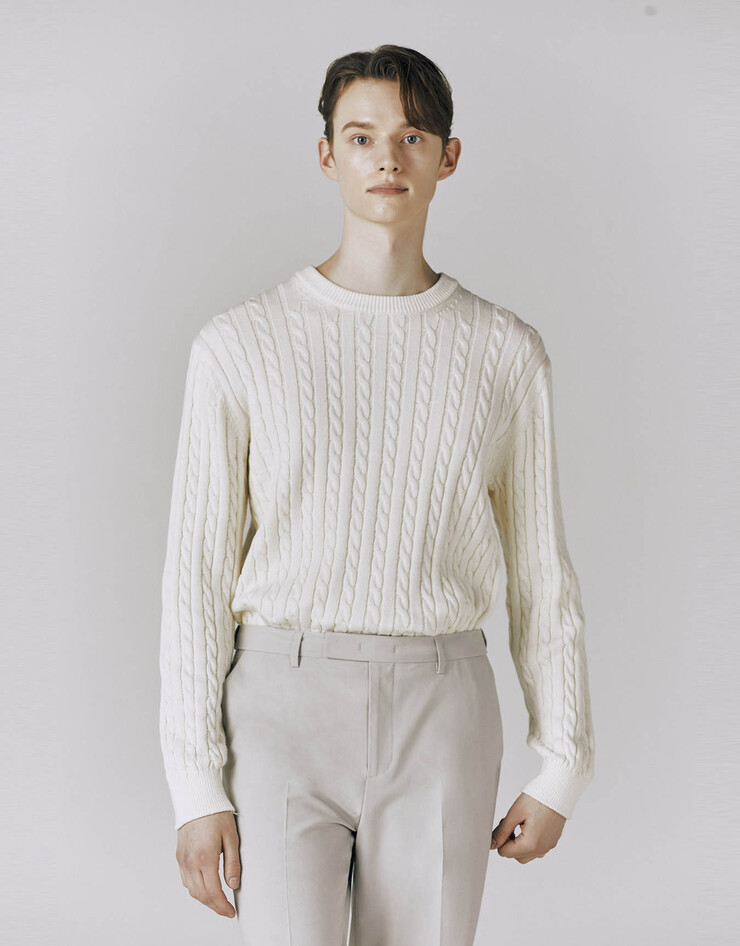 케이블 크루넥 니트 스웨터